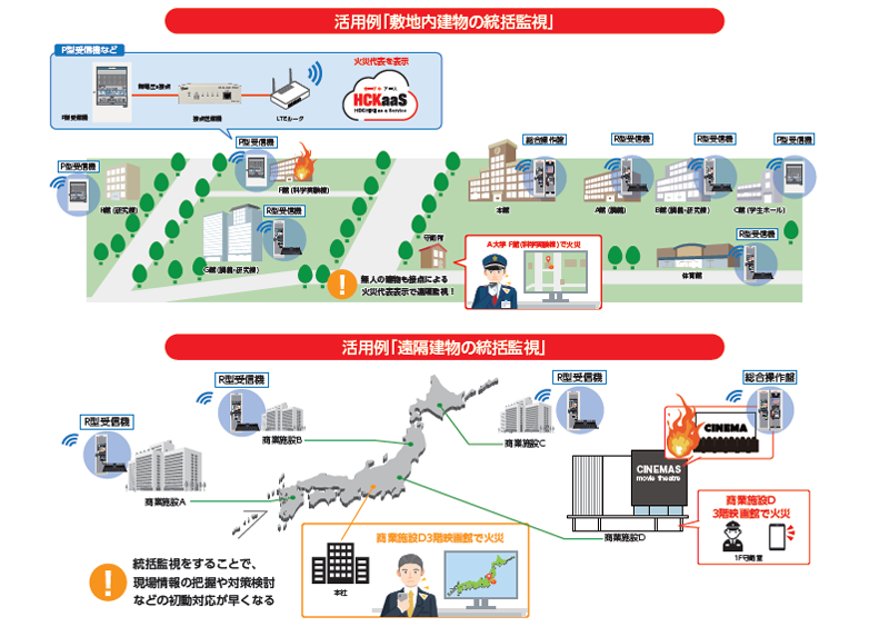 遠隔地や敷地内に点在する複数建物の火災/障害情報を集約