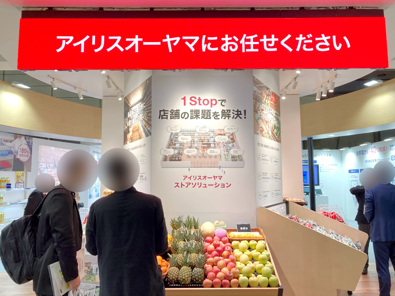 アイリスオーヤマ、人手不足や電気代高騰に悩む小売店に対し、什器・照明から清掃・警備ロボットまでを一括提案する「ストアソリューション」を、スーパーマーケット・トレードショー2026で紹介